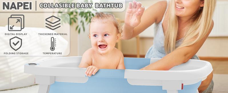 - 【Visible Temperature】Baby Bathtub is equipped with a temperature sensor, convenient for parents to adjust the water temperature in time. Ensure the safety and comfort of the baby when bathing.